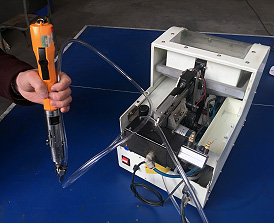 手持式鎖螺釘機是由鎖緊工具和自動送螺釘機組成,手持工具對準(zhǔn)產(chǎn)品下壓鎖完一顆螺釘后,自動送釘機會快速送來下一顆螺釘入螺絲卡爪內(nèi),節(jié)省了手抓螺絲的時間。
