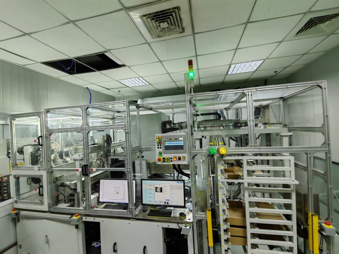 畜牧業(yè)智能儀自動產線,包含自動上料,銑水口,射頻檢測,激光打碼,視覺檢測,自動裝盒及整個的EMS系統(tǒng)。
